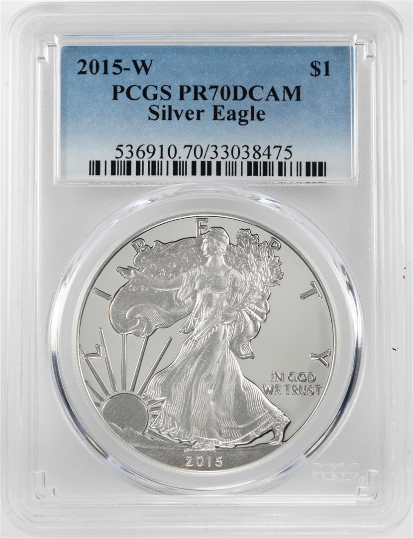 One 2015-W $1 Proof American Silver Eagle Coin PCGS PR70DCAM. PCGS Graded.
