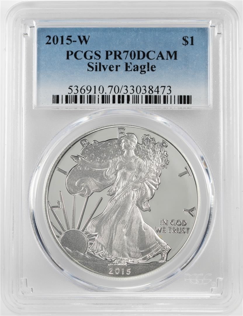 One 2015-W $1 Proof American Silver Eagle Coin PCGS PR70DCAM. PCGS Graded.