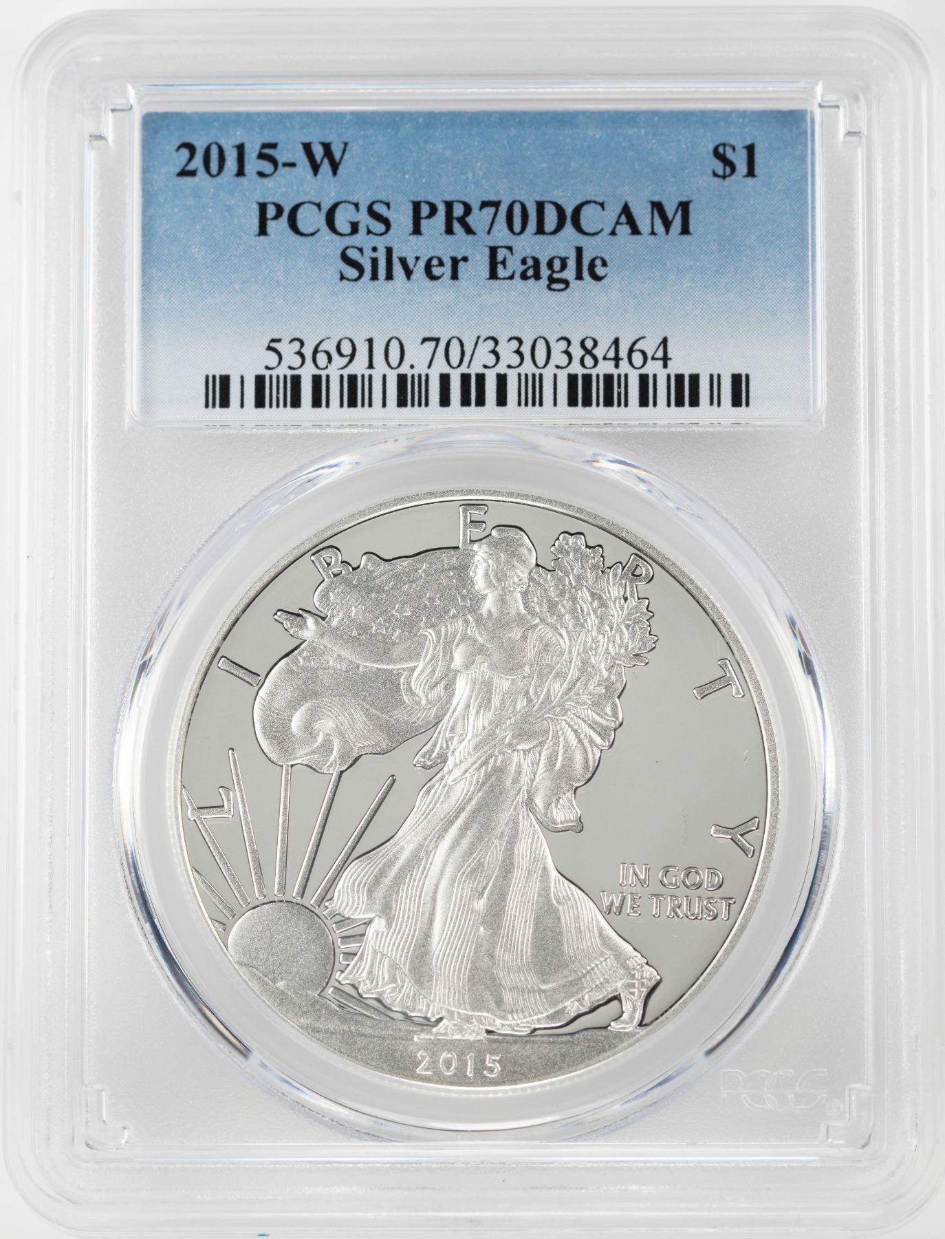 One 2015-W $1 Proof American Silver Eagle Coin PCGS PR70DCAM.