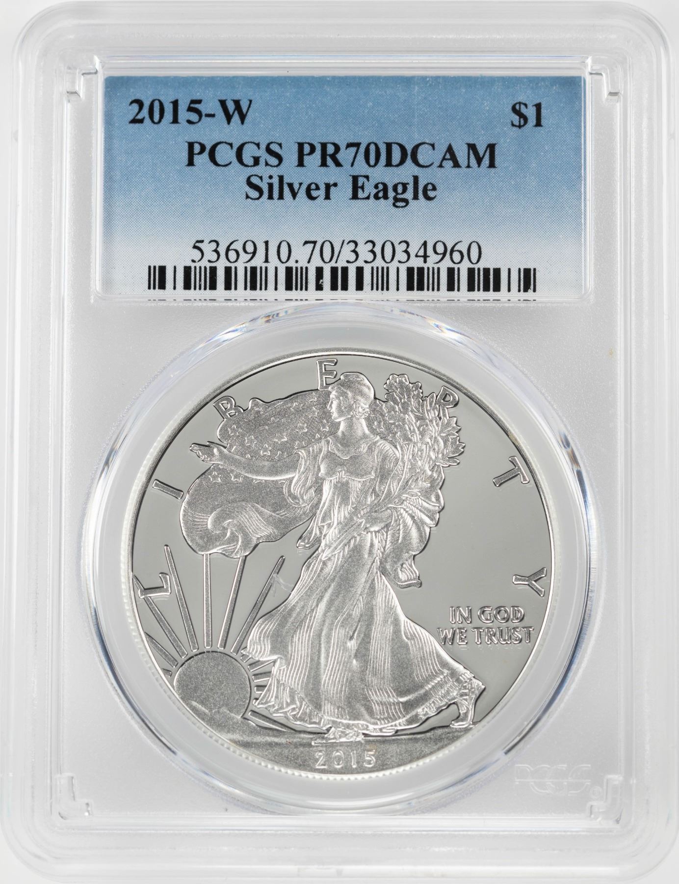 One 2015-W $1 Proof American Silver Eagle Coin PCGS PR70DCAM.
