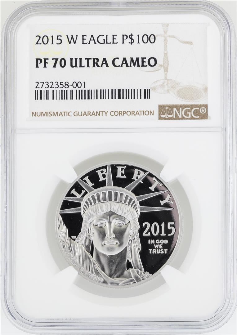 One 2015-W $100 Platinum American Eagle Coin NGC PF70 Ultra Cameo. NGC Certified.
