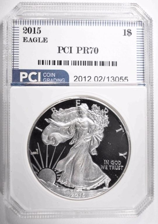 2015-W AMERICAN SILVER EAGLE, PCI PERFECT GEM PROOF ESTIMATE $90 - $110.
