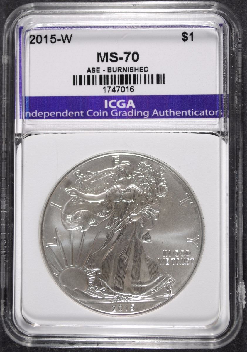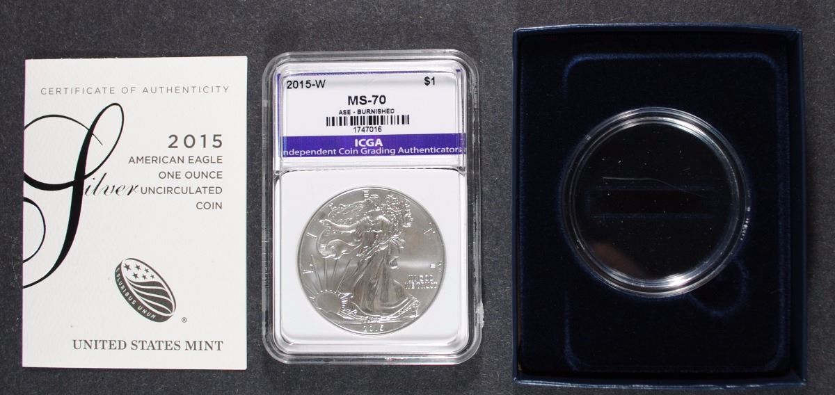 2015-W BURNISHED AMERICAN SILVER EAGLE ICGA PERFECT GEM BU, WITH ORIG BOX/COA