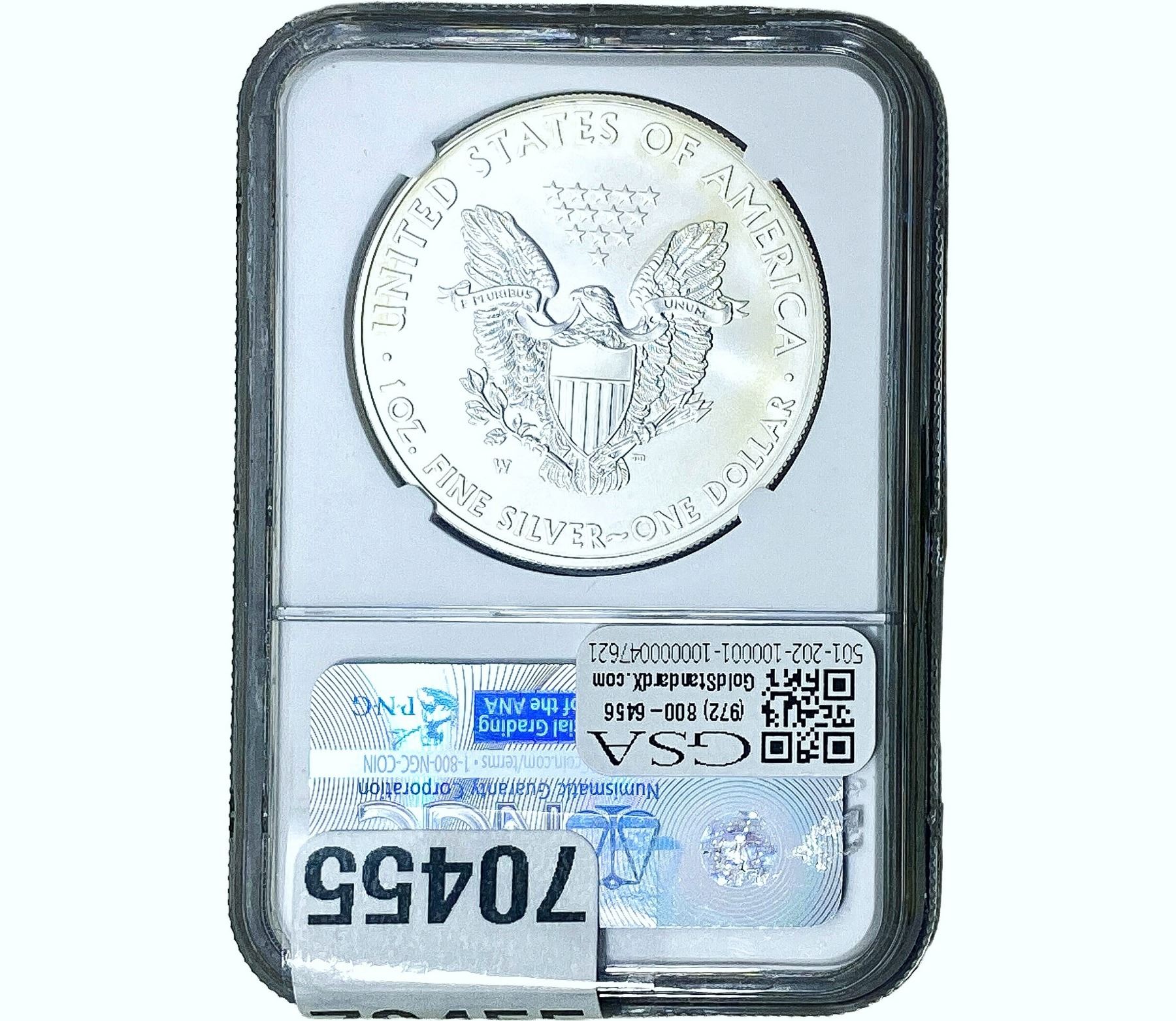 e. Coins sold referencing a third-party grading service are sold “AS IS” without any express or implied warranty, except for a guarantee by GSA that they are genuine. Removal or alteration of the holder, voids all of Bidder’s claims concerning that Product. Certain warranties may be available from the grading services and Bidders are referred to them for further details: Numismatic Guaranty Corporation (NGC), PO Box 4776, Sarasota, FL 34230, www.ngccoin.com/services/writtenguarantee.asp; Professional Coin Grading Services (PCGS), PO Box 9458, Newport Beach, CA 92658, www.pcgs.com/guarantee.html; ANACS, 6555 S. Kenton St., Ste. 303, Englewood, CO 80111; and Independent Coin Grading Co. (ICG), 7901 East Bellview, Ave., Suite 50, Englewood, CO 80111.
