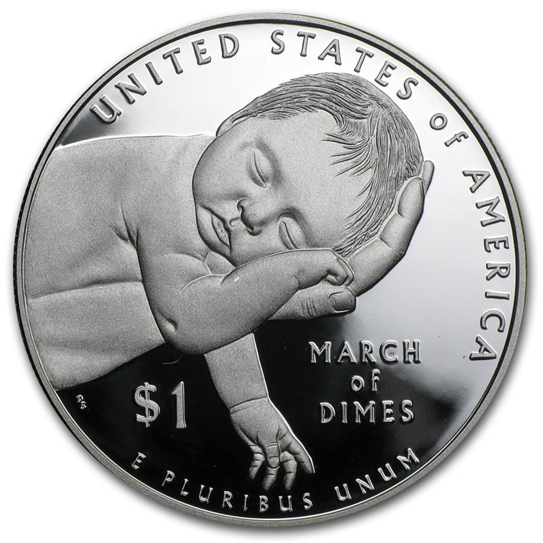 One 2015-W U.S. March of Dimes $1 Silver Commem Proof (w/Box & COA).