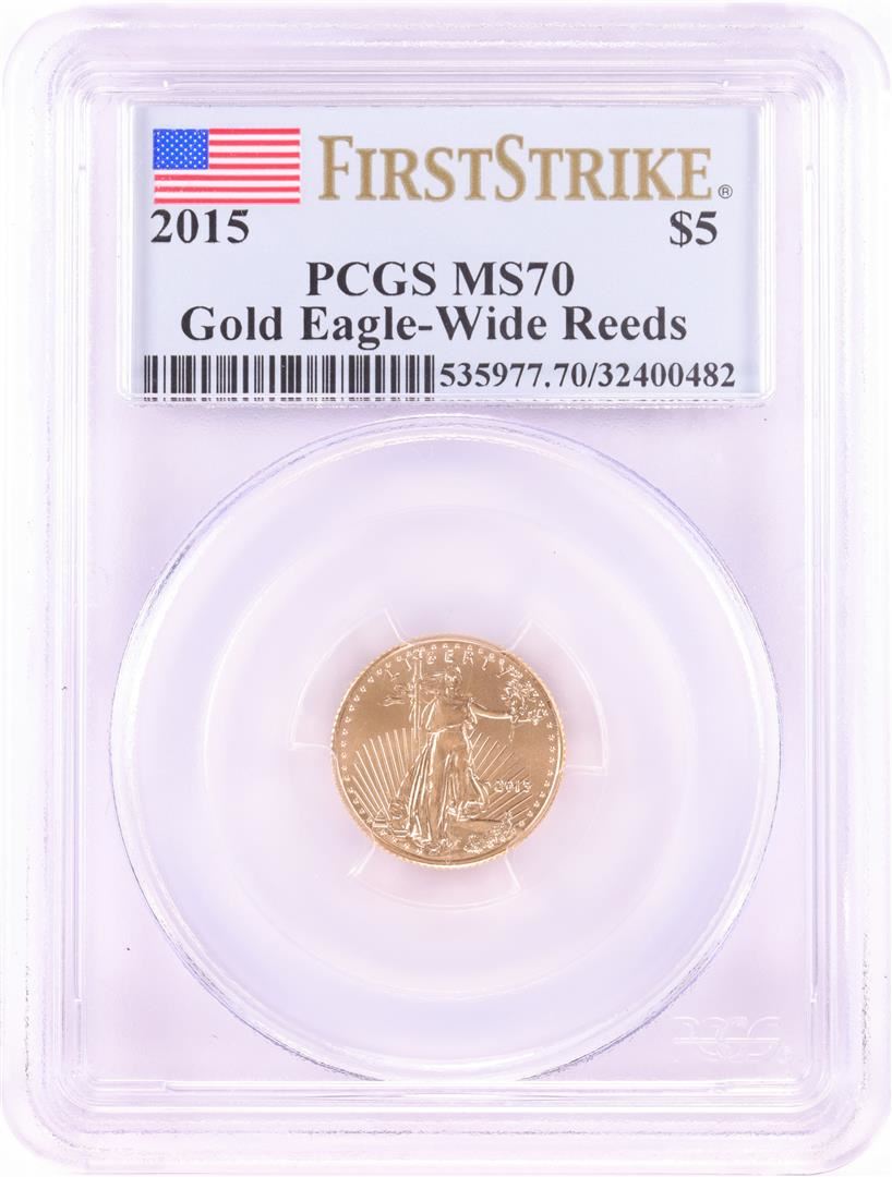2015 Wide Reeds $5 American Gold Eagle Coin PCGS MS70 First Strike