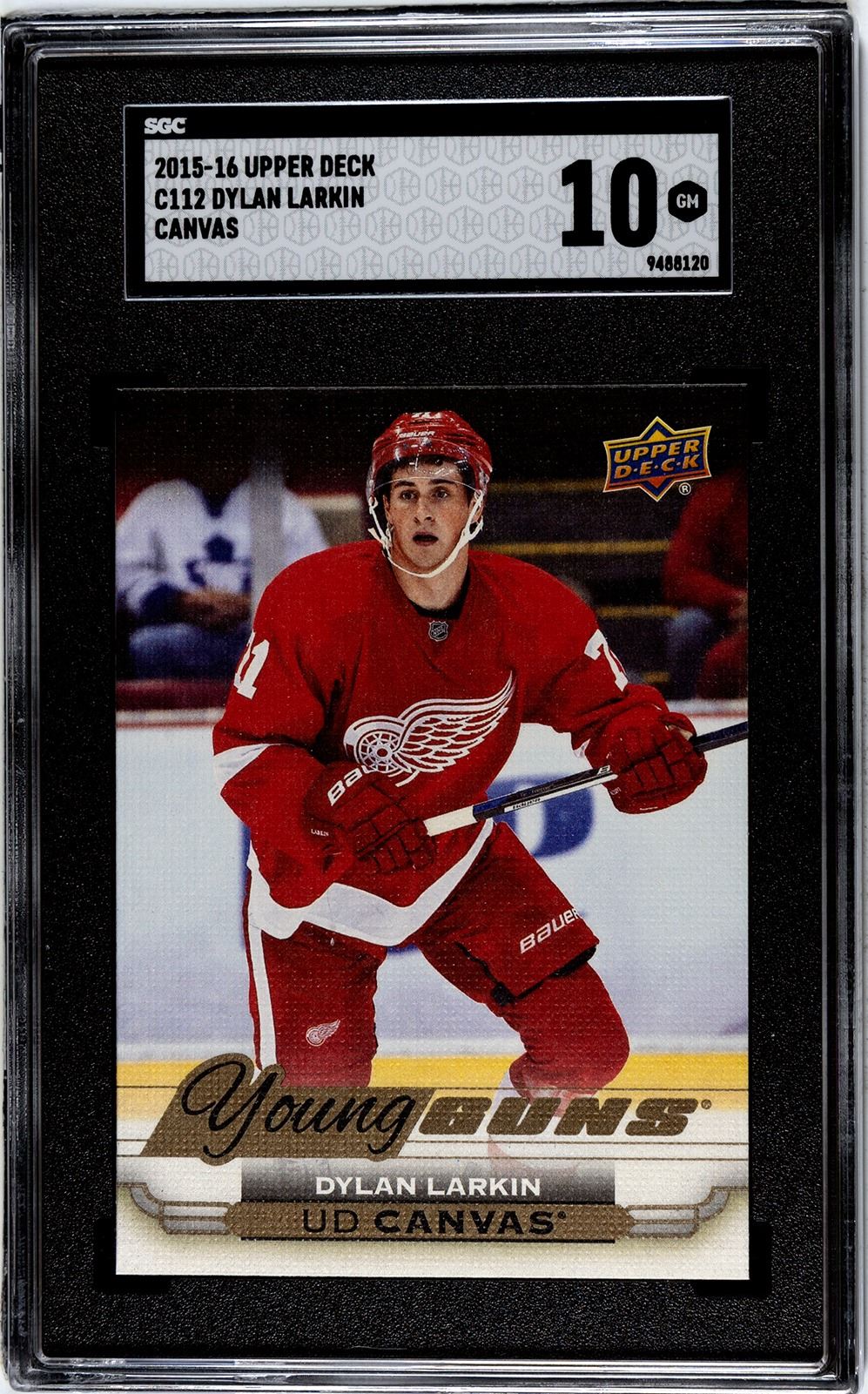2015 Young Guns/Rookie Cavnvas of Redwings captain Dylan Larkin graded a SGC 10 Gem Mint.
