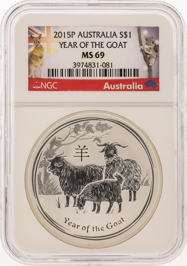 One 2015P $1 Australia Year of the Goat Silver Coin NGC MS69. NGC Certified.