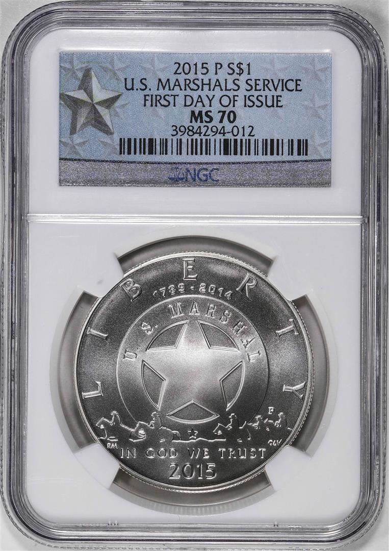 One 2015P $1 U.S. Marshals Service Commemorative Silver Dollar Coin NGC MS70 FDOI. NGC Certified.