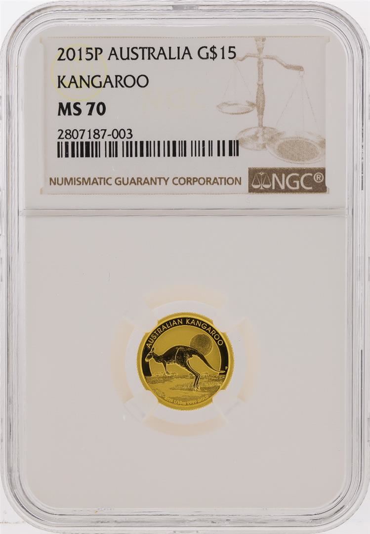 One 2015P $15 Australia Kangaroo Gold Coin NGC MS70. NGC Certified.