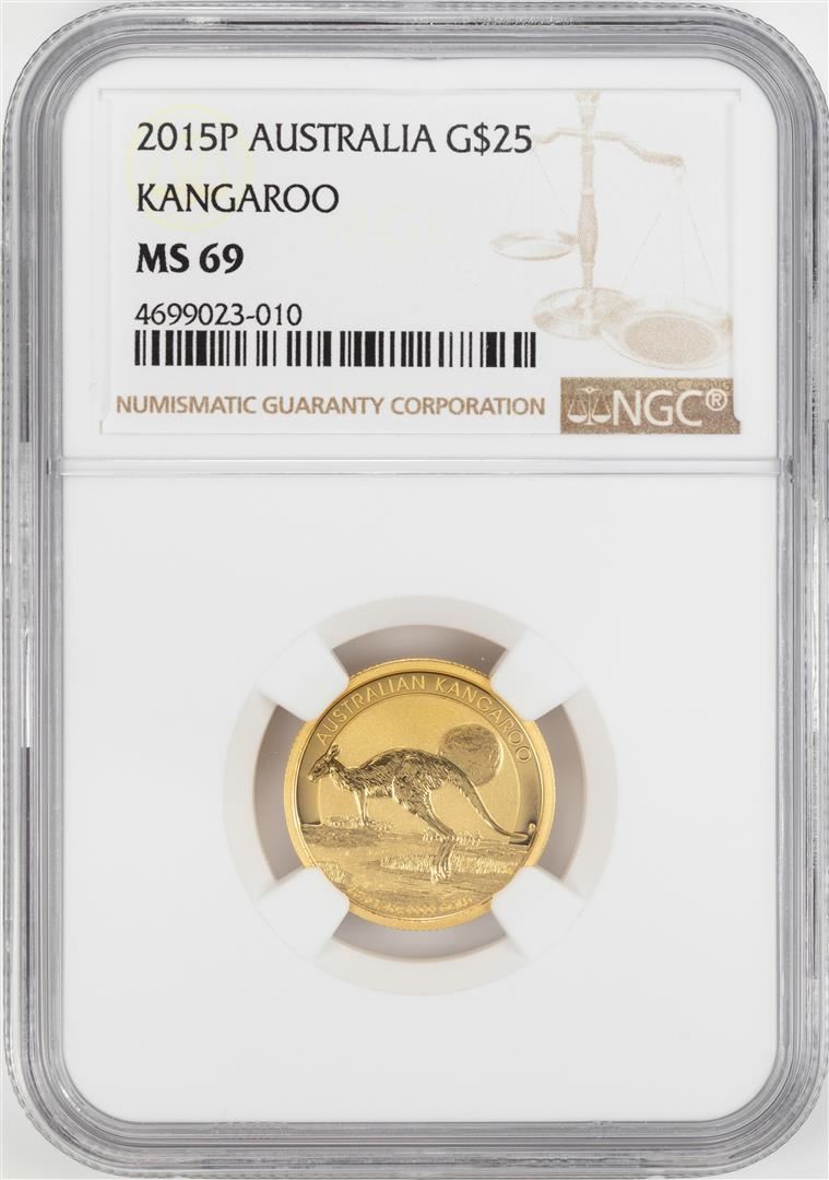 One 2015P $25 Australia Kangaroo Gold Coin NGC MS69. NGC Certified.