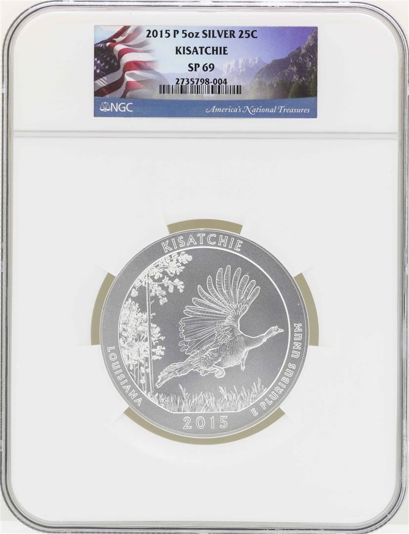 One 2015P 5oz ATB Kisatchie Louisiana Silver Coin NGC SP69. NGC Certified.