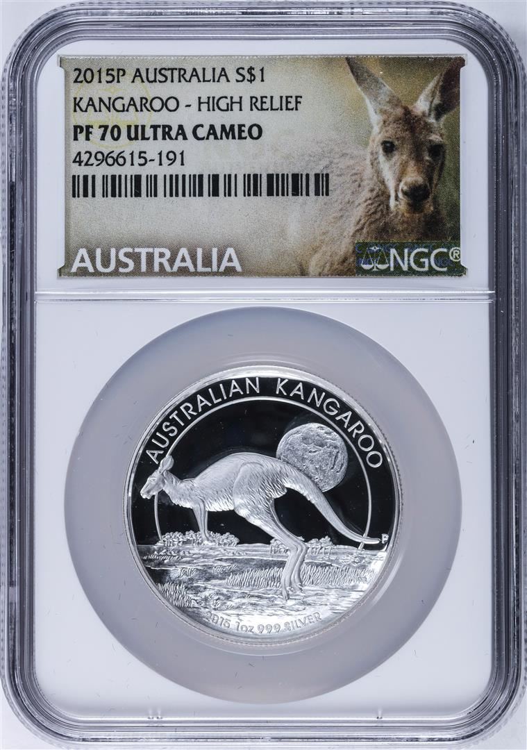 One 2015P Australia $1 Proof Kangaroo High Relief 1oz Silver Coin NGC PF70 Ultra Cameo. NGC Certified.