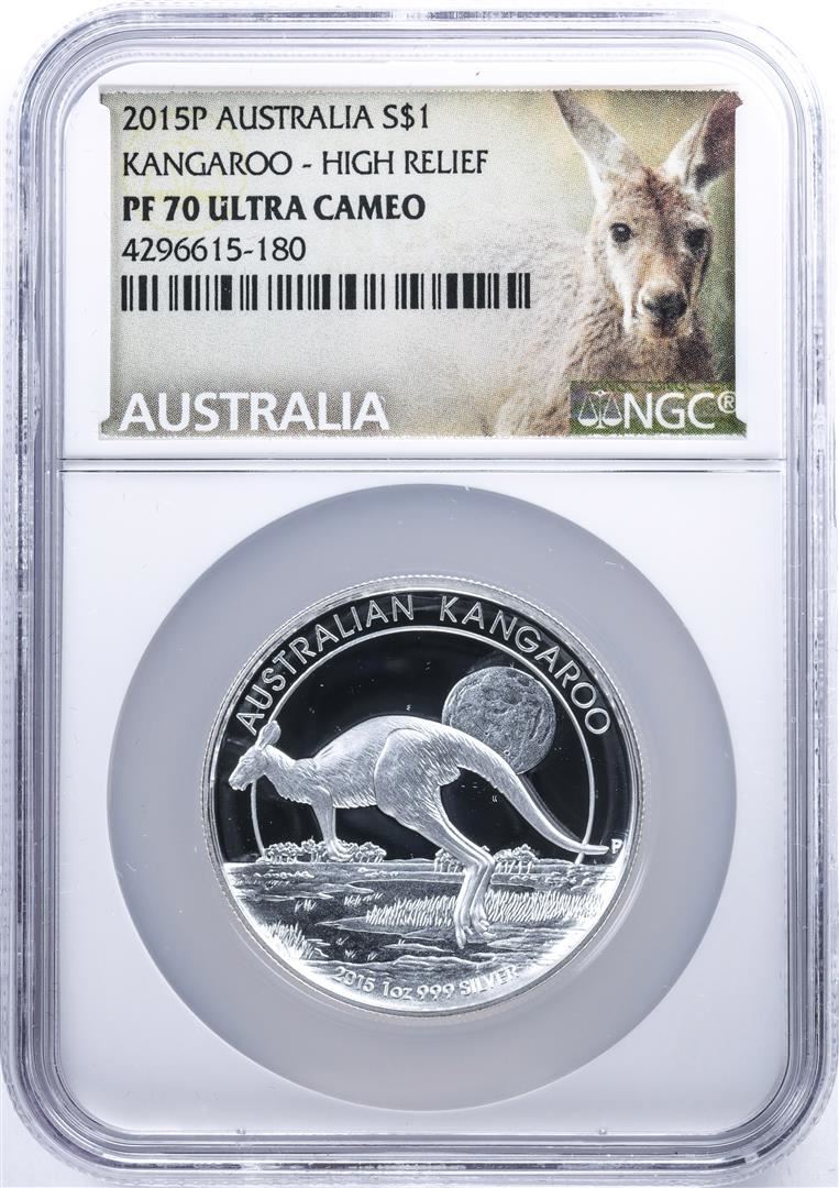 One 2015P Australia $1 Proof Kangaroo High Relief 1oz Silver Coin NGC PF70 Ultra Cameo. NGC Certified.