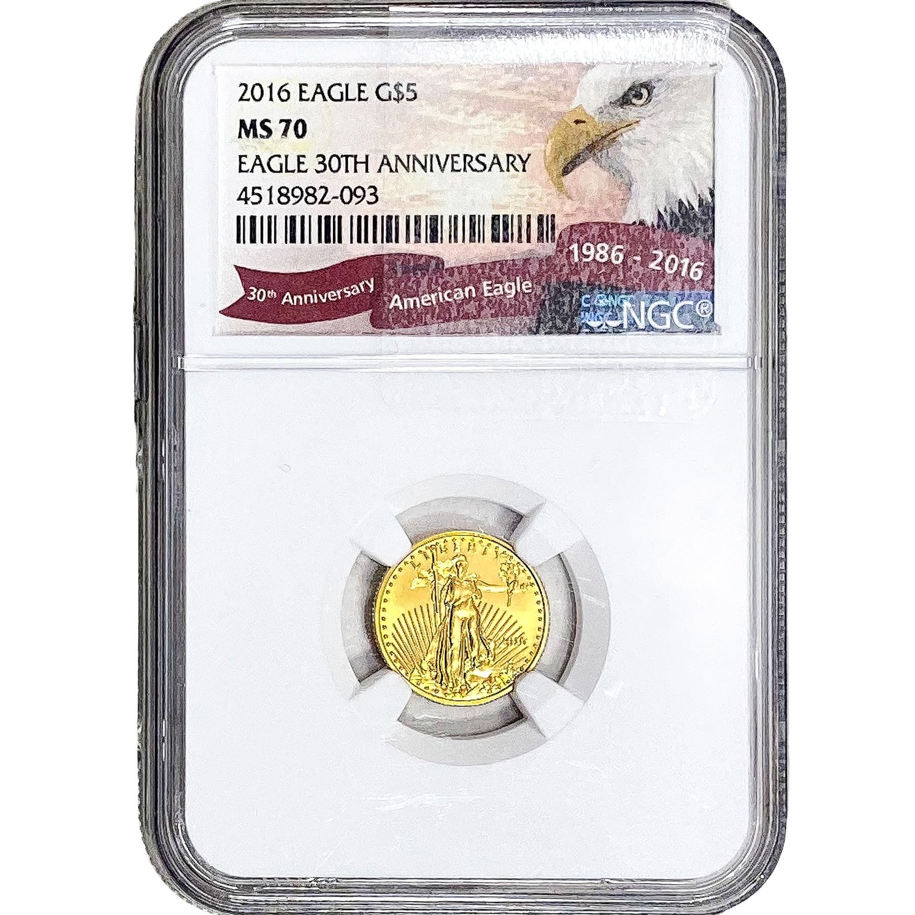 2016 1/10 OZ Gold Eagle $5 NGC MS70 30th Anniv.