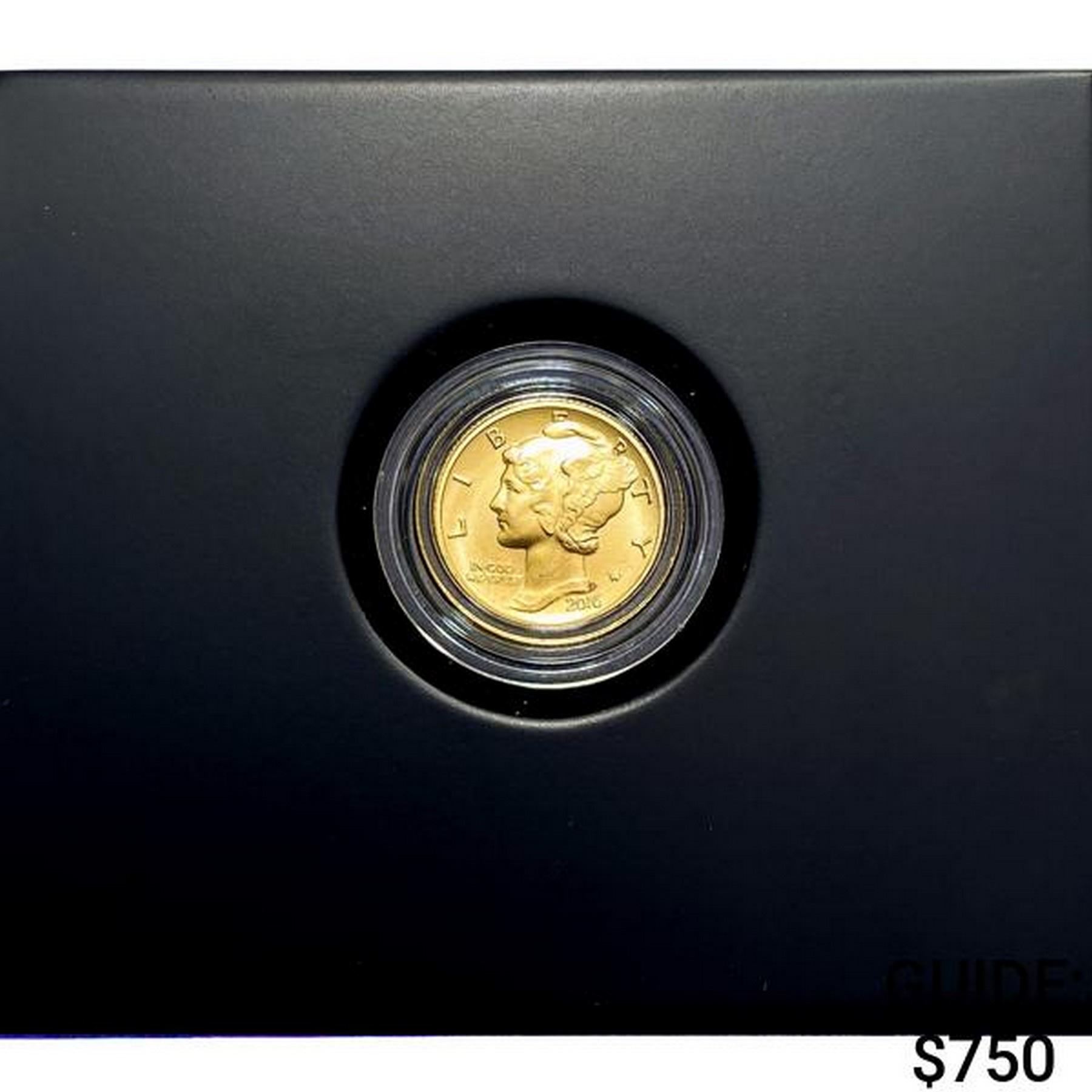 2016 1/10oz Gold Mercury Dime Centennial Coin