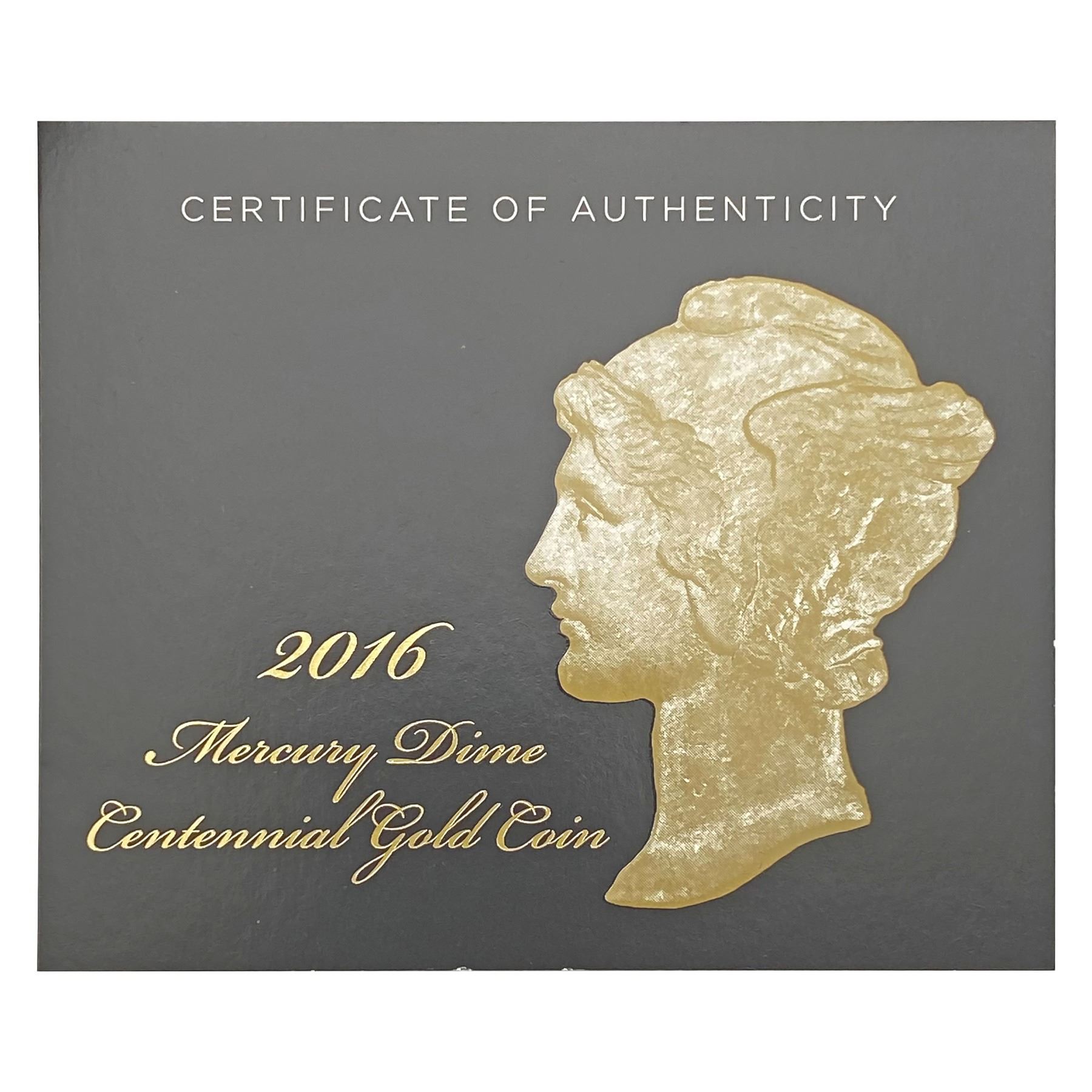 2016 1/10oz Gold Mercury Dime Centennial Coin
