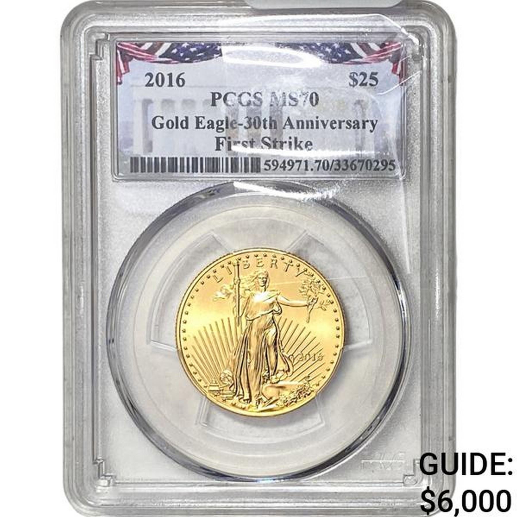 2016 1/2oz $25 Gold Eagle PCGS MS70 First Strike