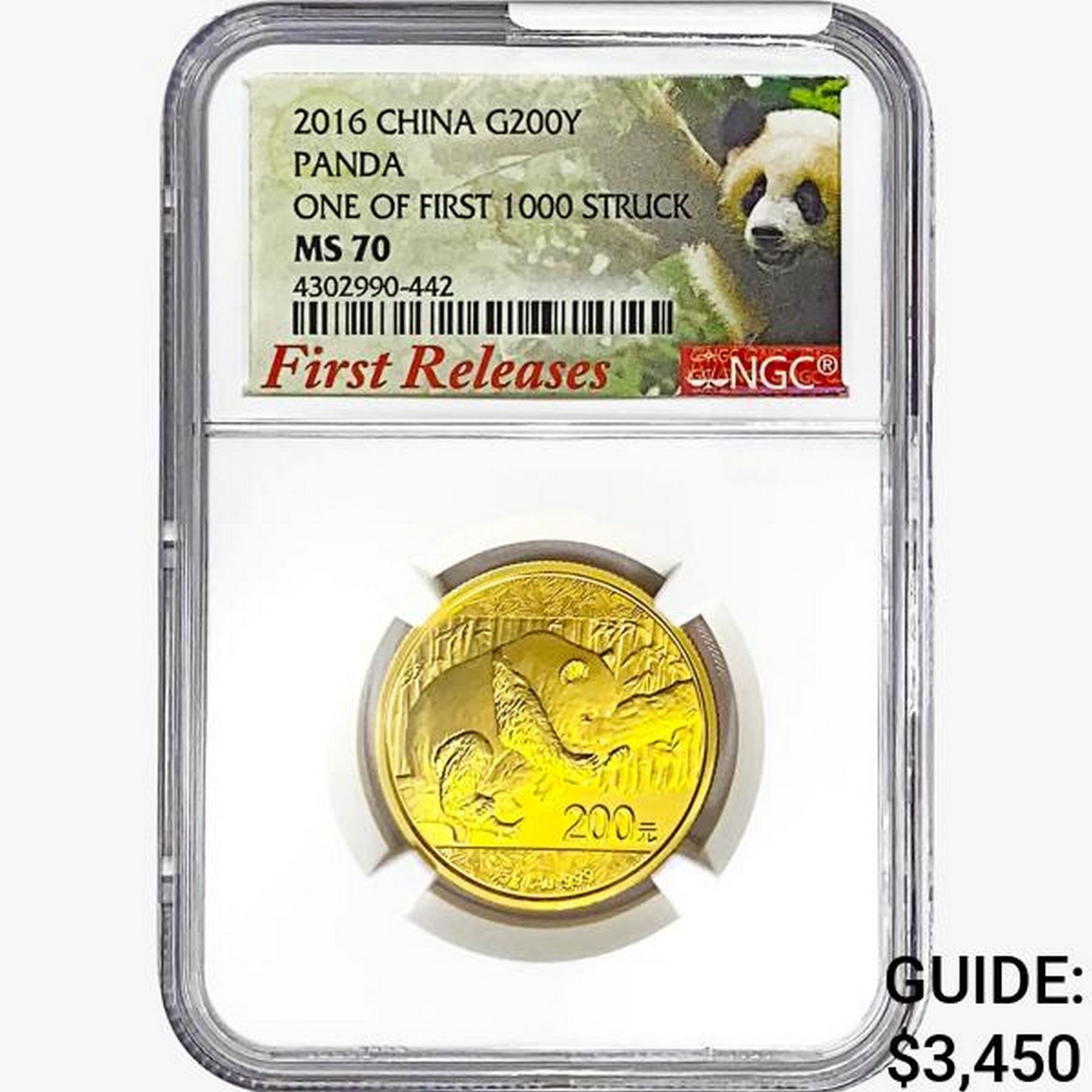 2016 1/2oz. Gold 200 Yuan China Panda NGC MS70