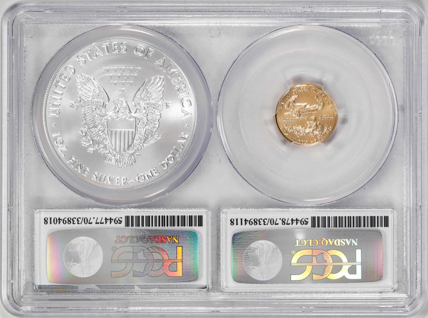 2016 $1 American Silver & $5 Gold Eagle 30th Anniversary Bimetallic Set PCGS MS70 FDOI