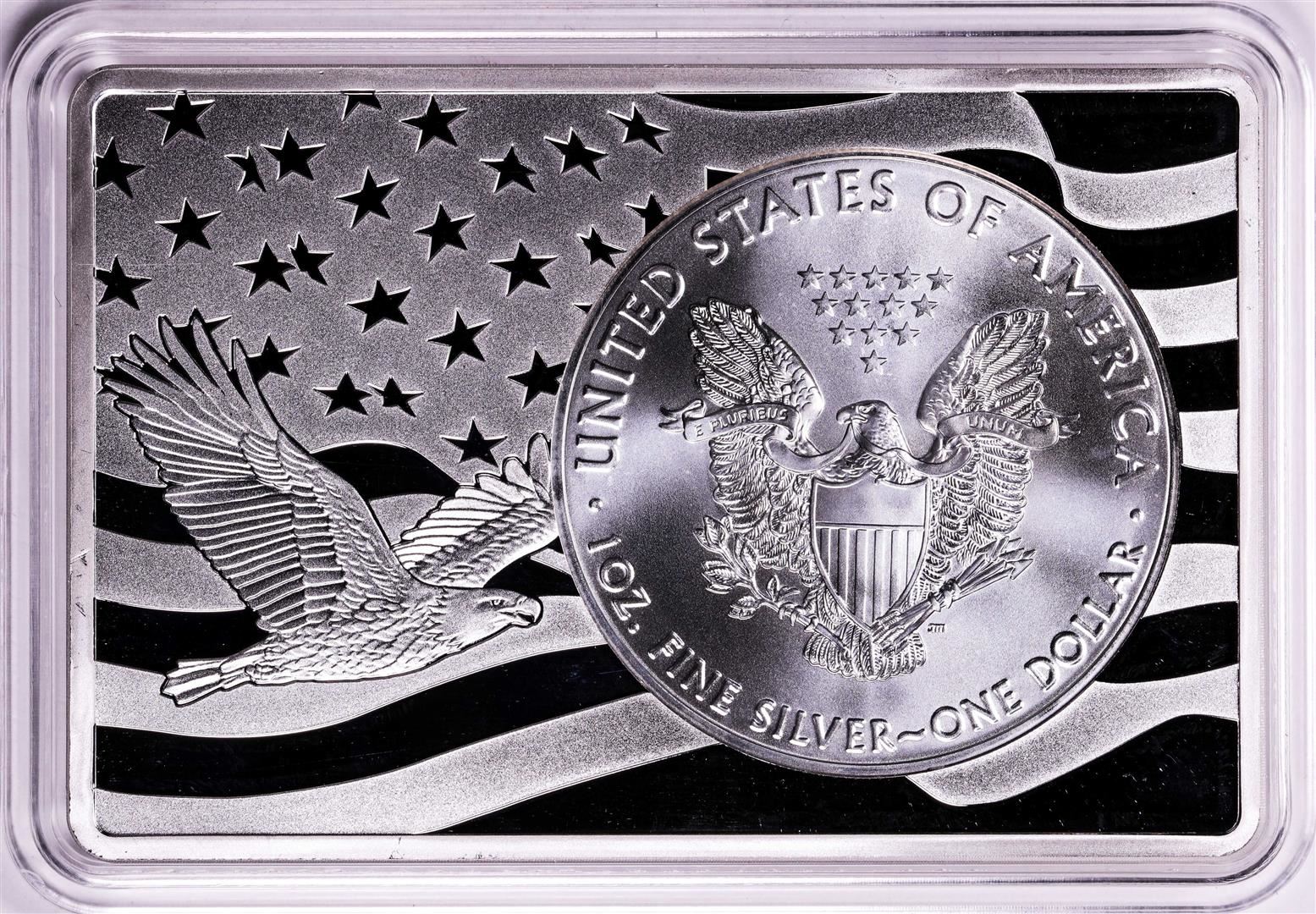 One 2016 $1 American Silver Eagle Coin & 2oz Silver Bar Set.