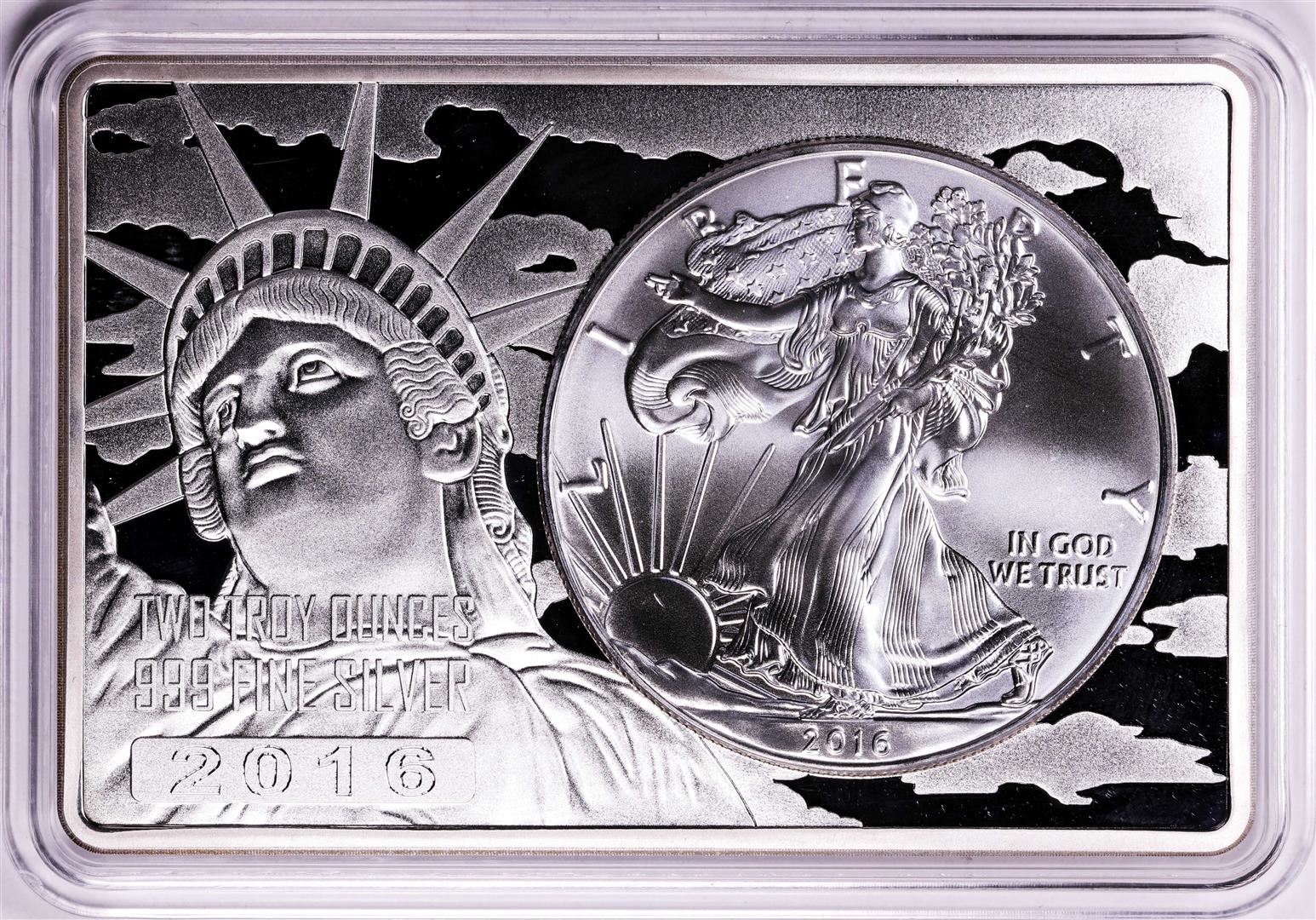 One 2016 $1 American Silver Eagle Coin & 2oz Silver Bar Set.