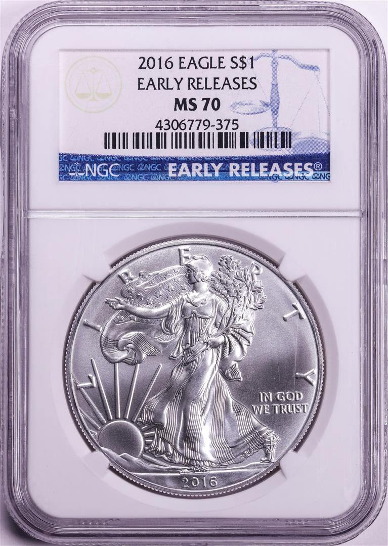 One 2016 $1 American Silver Eagle Coin NGC MS70 Early Releases. NGC Certified.