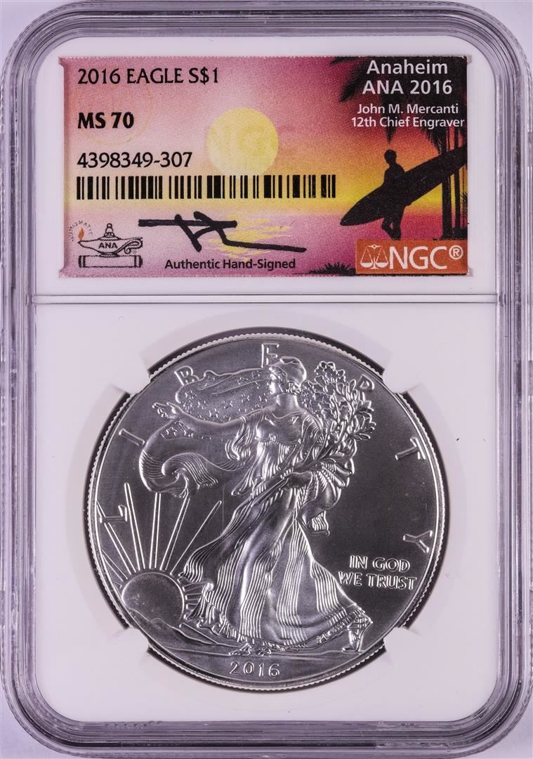 2016 $1 American Silver Eagle Coin NGC MS70 Mercanti Signature ANA