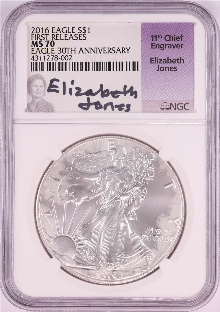 2016 $1 American Silver Eagle Coin NGC MS70 Signed by Elizabeth Jones