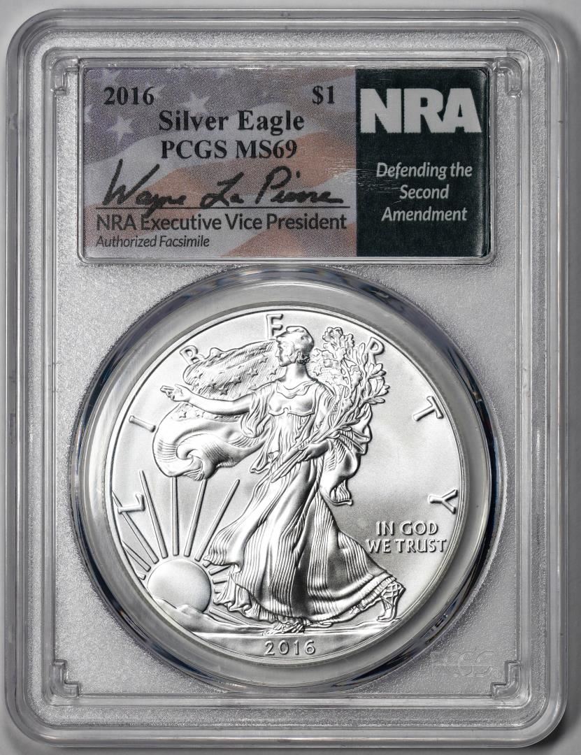 2016 $1 American Silver Eagle Coin PCGS MS69 First Strike LaPierre Sig VP of NRA