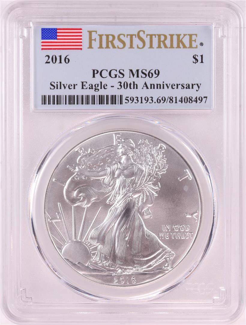 One 2016 $1 American Silver Eagle Coin PCGS MS69 First Strike. PCGS Graded.