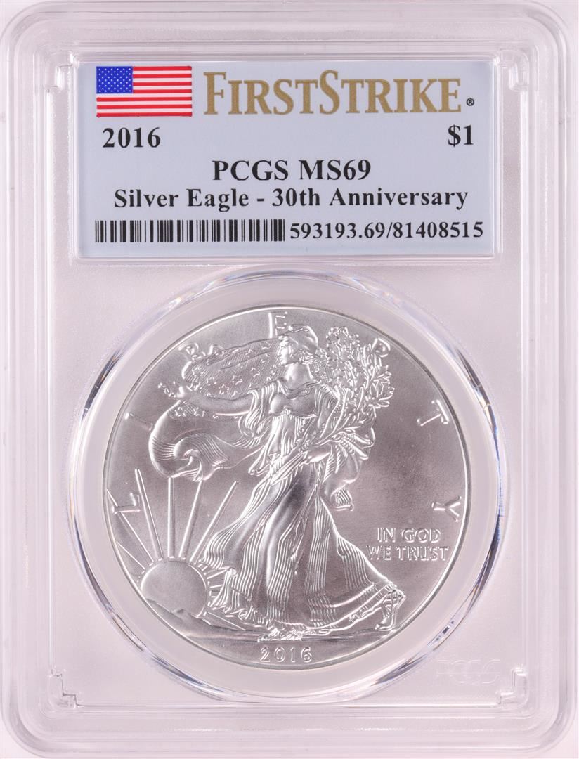 One 2016 $1 American Silver Eagle Coin PCGS MS69 First Strike. PCGS Graded.