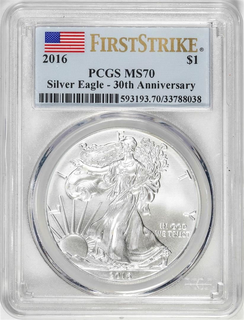 One 2016 $1 American Silver Eagle Coin PCGS MS70 First Strike. PCGS Graded.