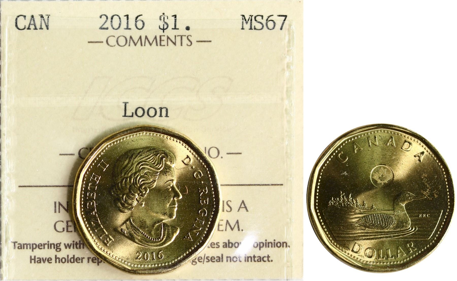 2016 $1 "Loon" ICCS Superb Gem Mint State-67