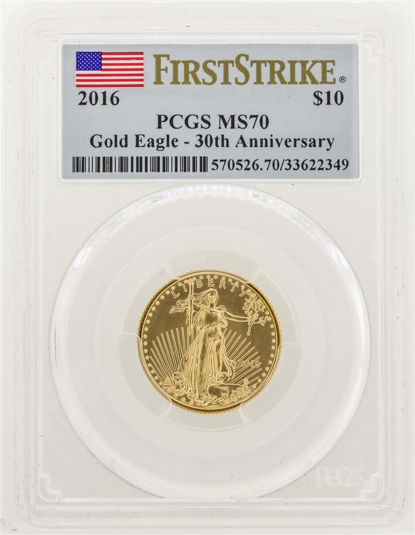 2016 $10 American Gold Eagle Coin PCGS MS70 30th Anniversary First Strike