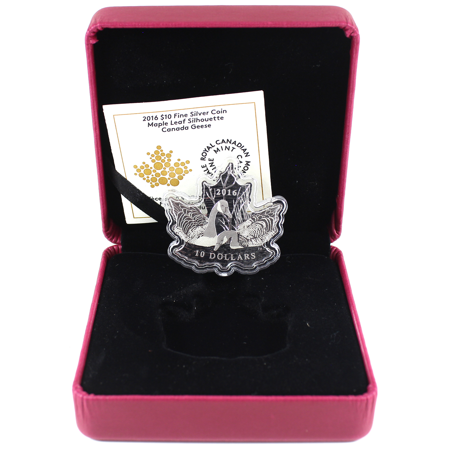 2016 $10 Canada Geese Maple Leaf Shaped Silhouette 1/2oz .9999 Fine Silver Coin (Tax Exempt)