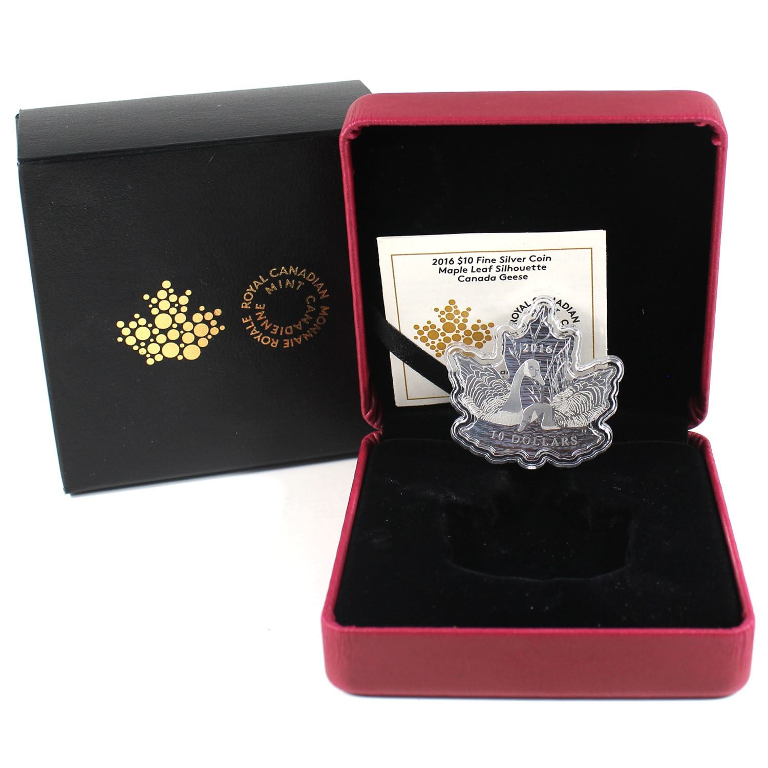2016 $10 Canada Geese Maple Leaf Shaped Silhouette Fine Silver Coin (TAX Exempt).