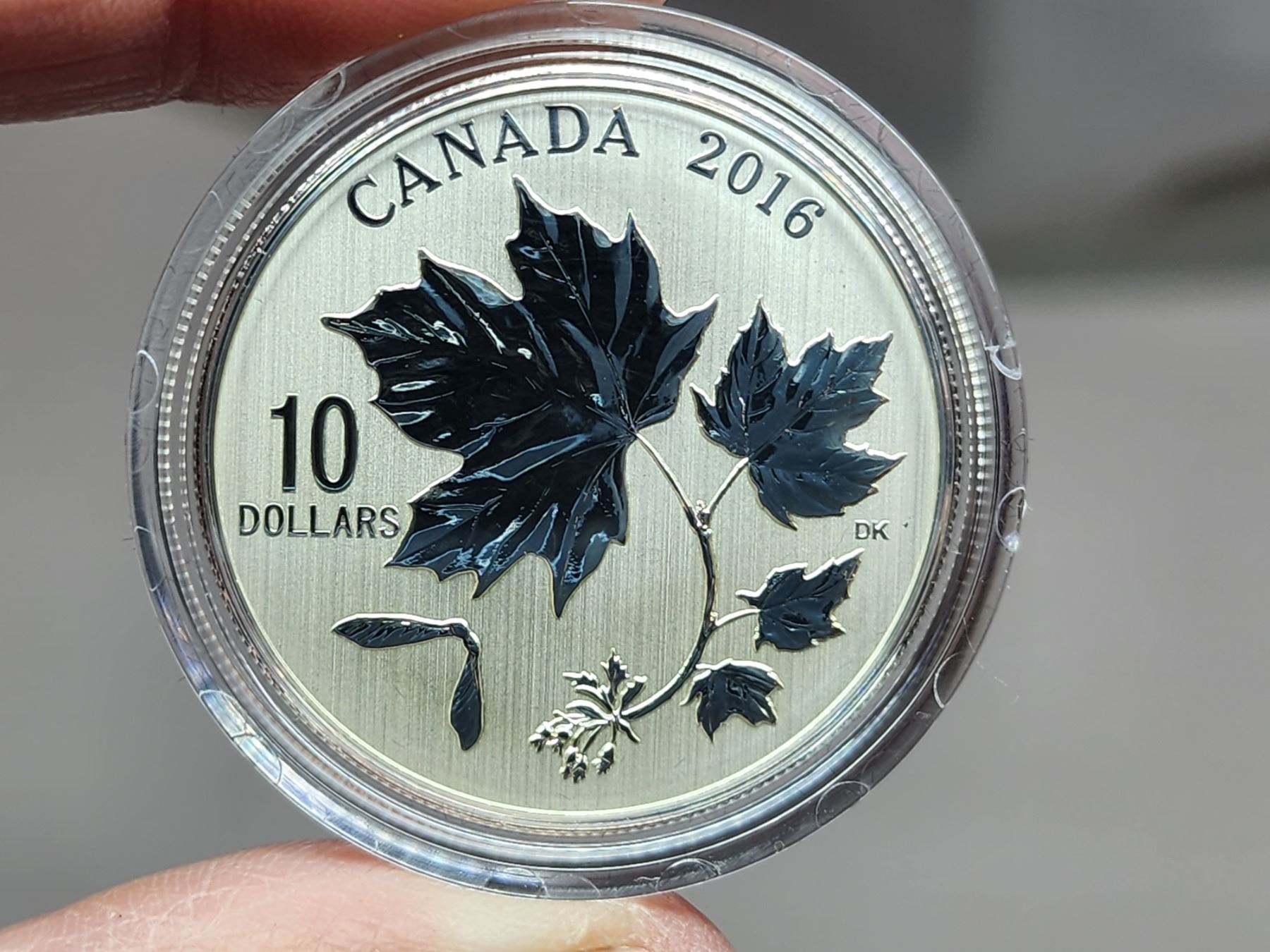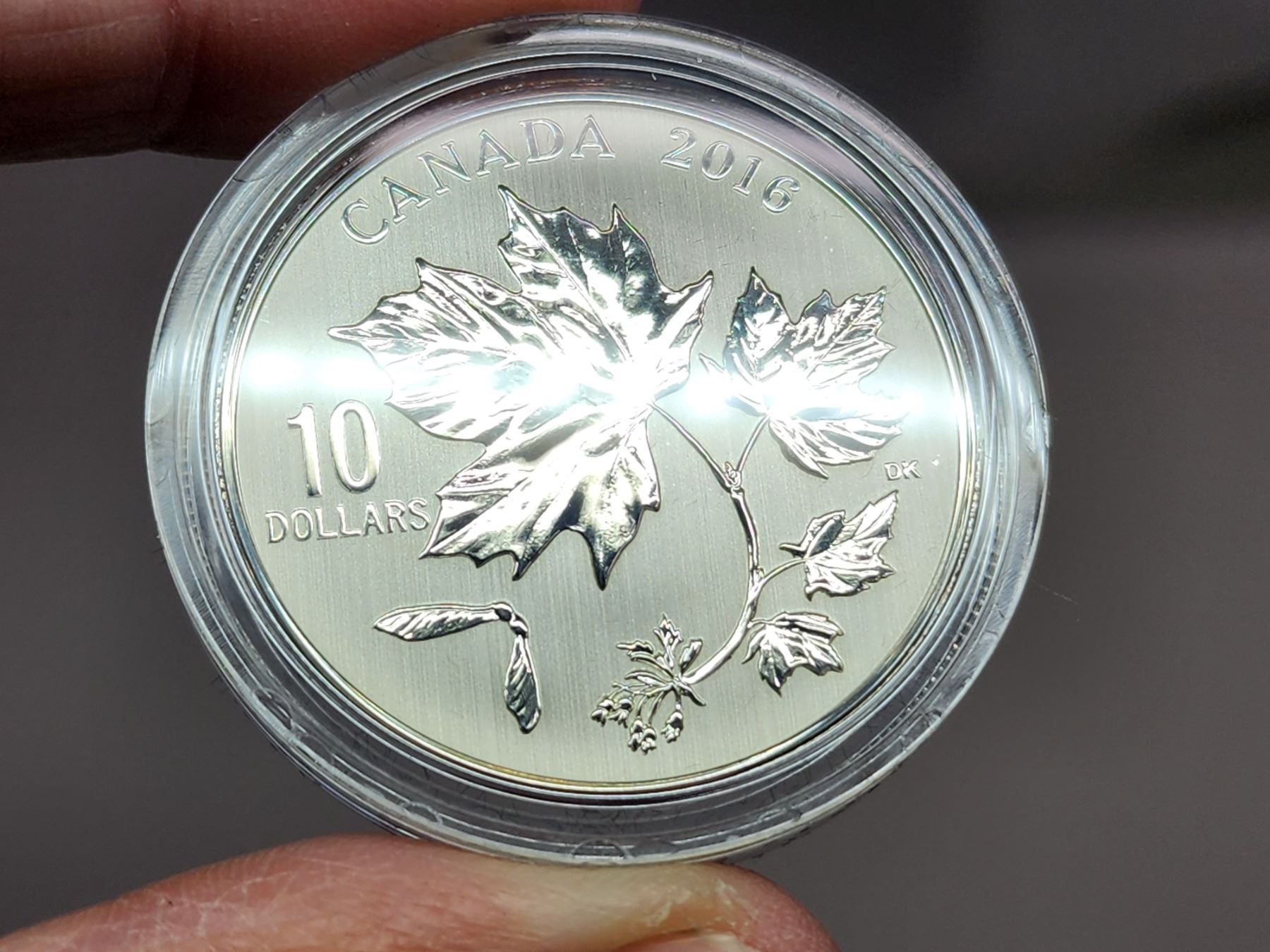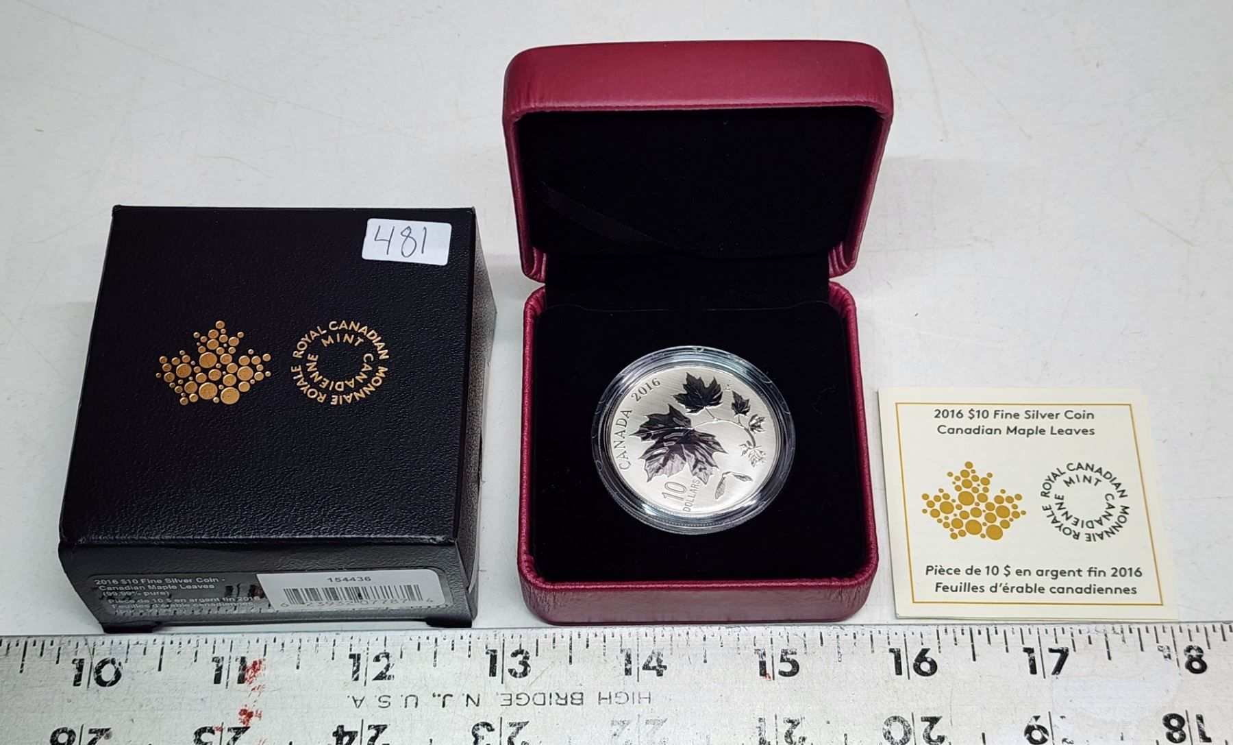 2016 $10 Canadian Maple Leaves. 99.99% pure Silver. Housed in its original RCM case & box of issue.