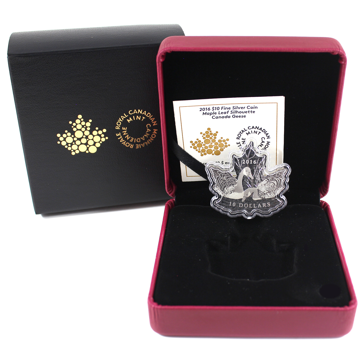 Coin is 1/2oz and .9999 fine, shaped like a maple leaf. (Tax Exempt)