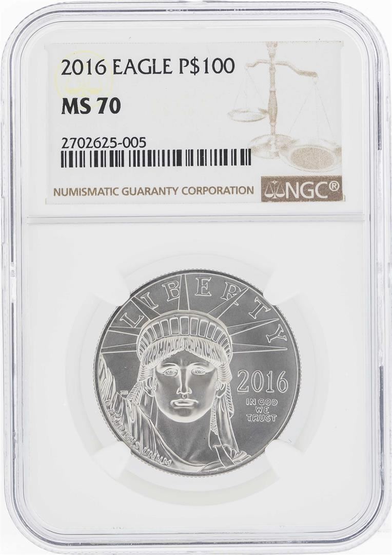 One 2016 $100 American Platinum Eagle Coin NGC MS70. NGC Certified.