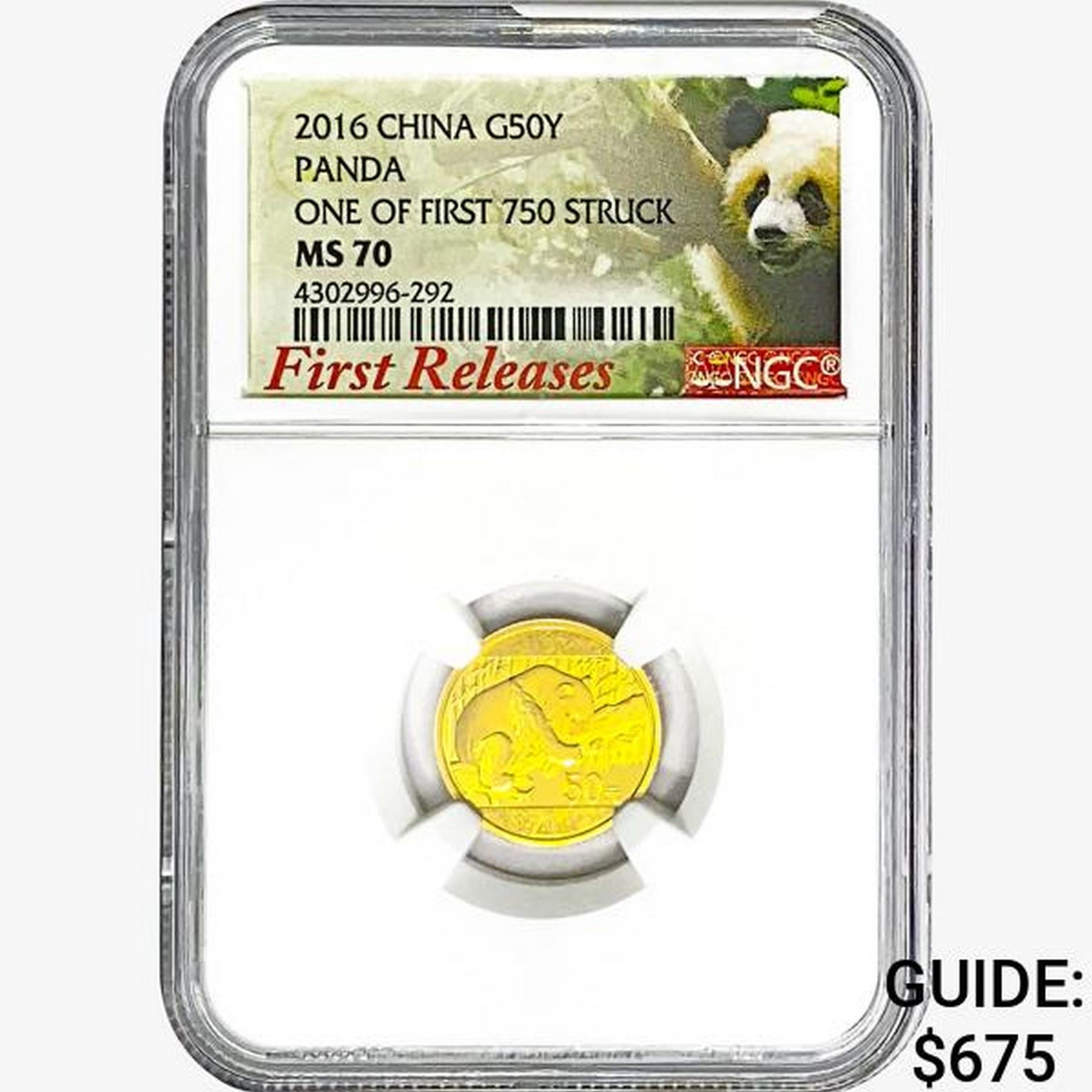 2016 .1058oz. Gold 50 Yuan China Panda NGC MS70