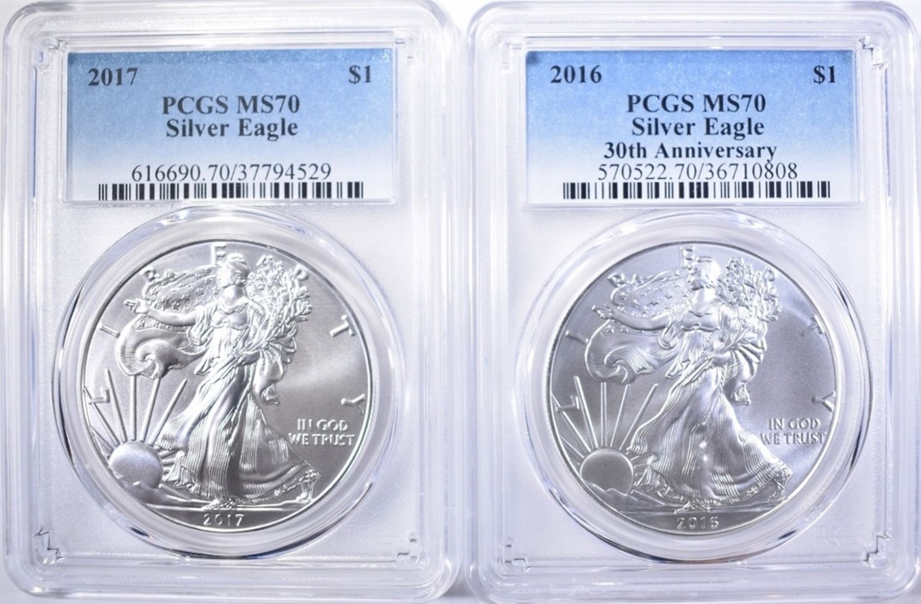2016 & 17 AMERICAN SILVER EAGLES, PCGS MS-70