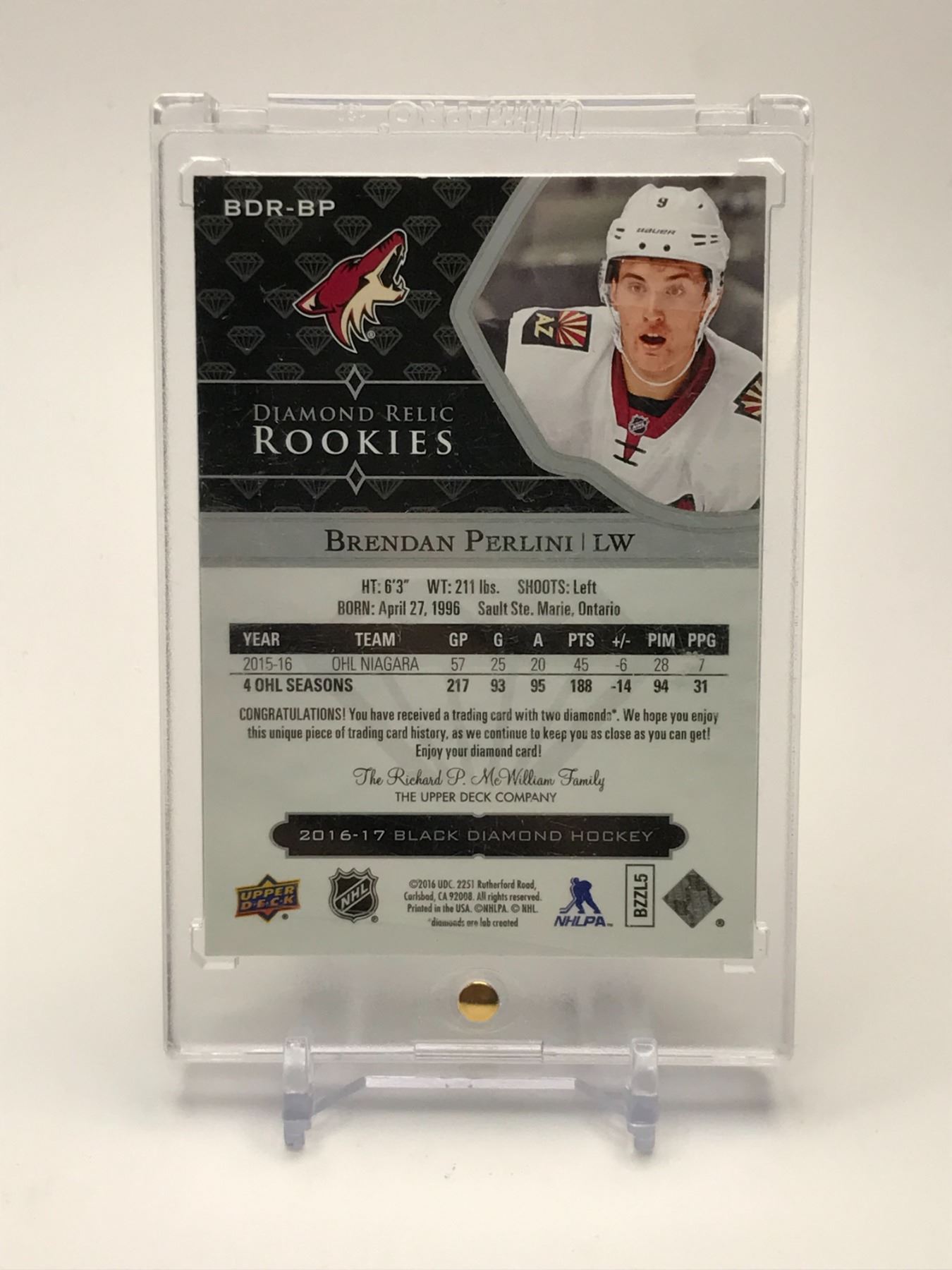 2016-17 BLACK DIAMOND BO.BDR-BP BRENDAN PERLINI RELIC ROOKIE