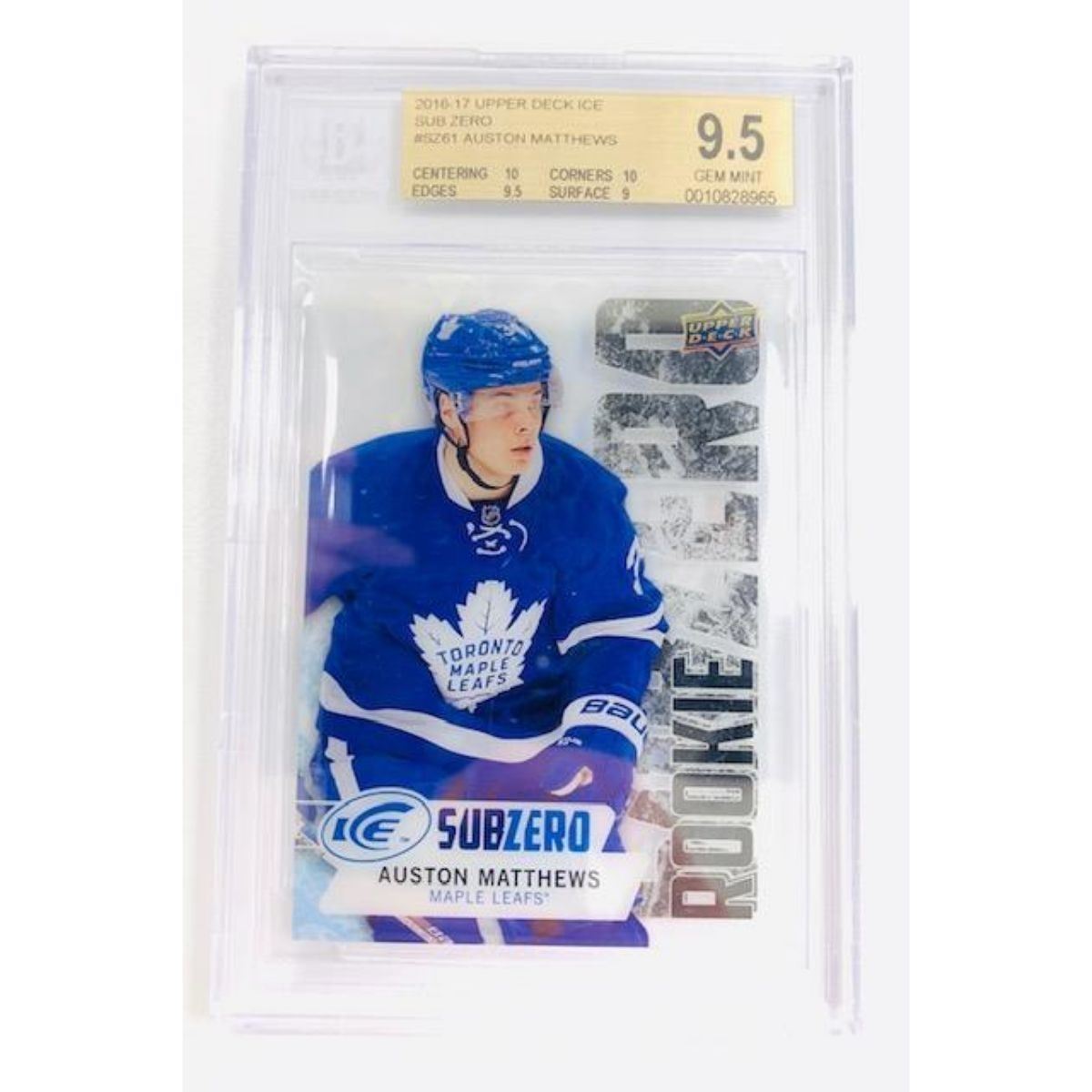 2016-17 Graded Upper Deck Ice Sub Zero #SZ61 Toronto Maple Leafs Auston Matthews Rookie Card. Beckett Graded 9.5 GEM MINT. Please View Photos For Further Details. Â
