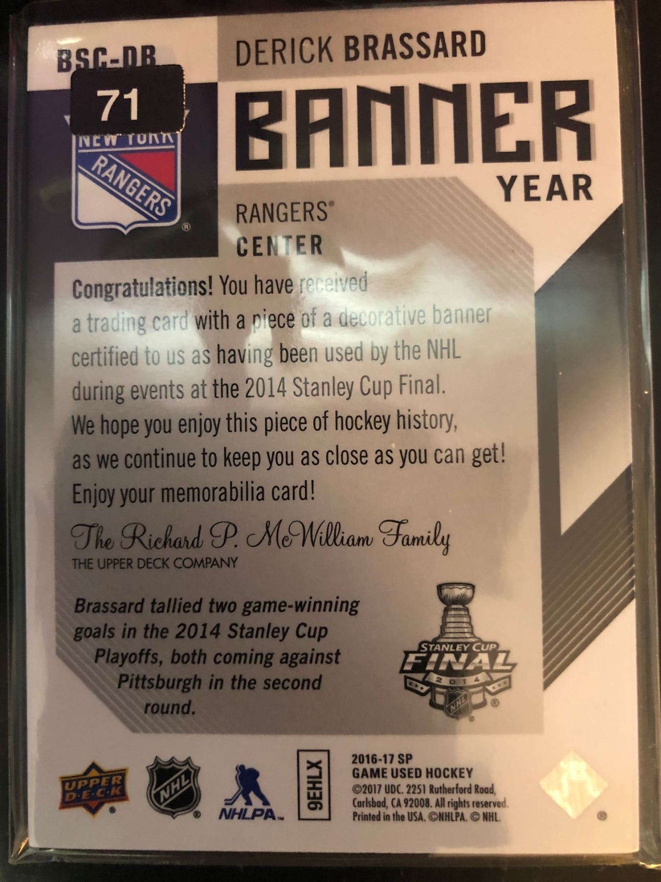 2014 Stanley Cup Final Card #BSC-DB