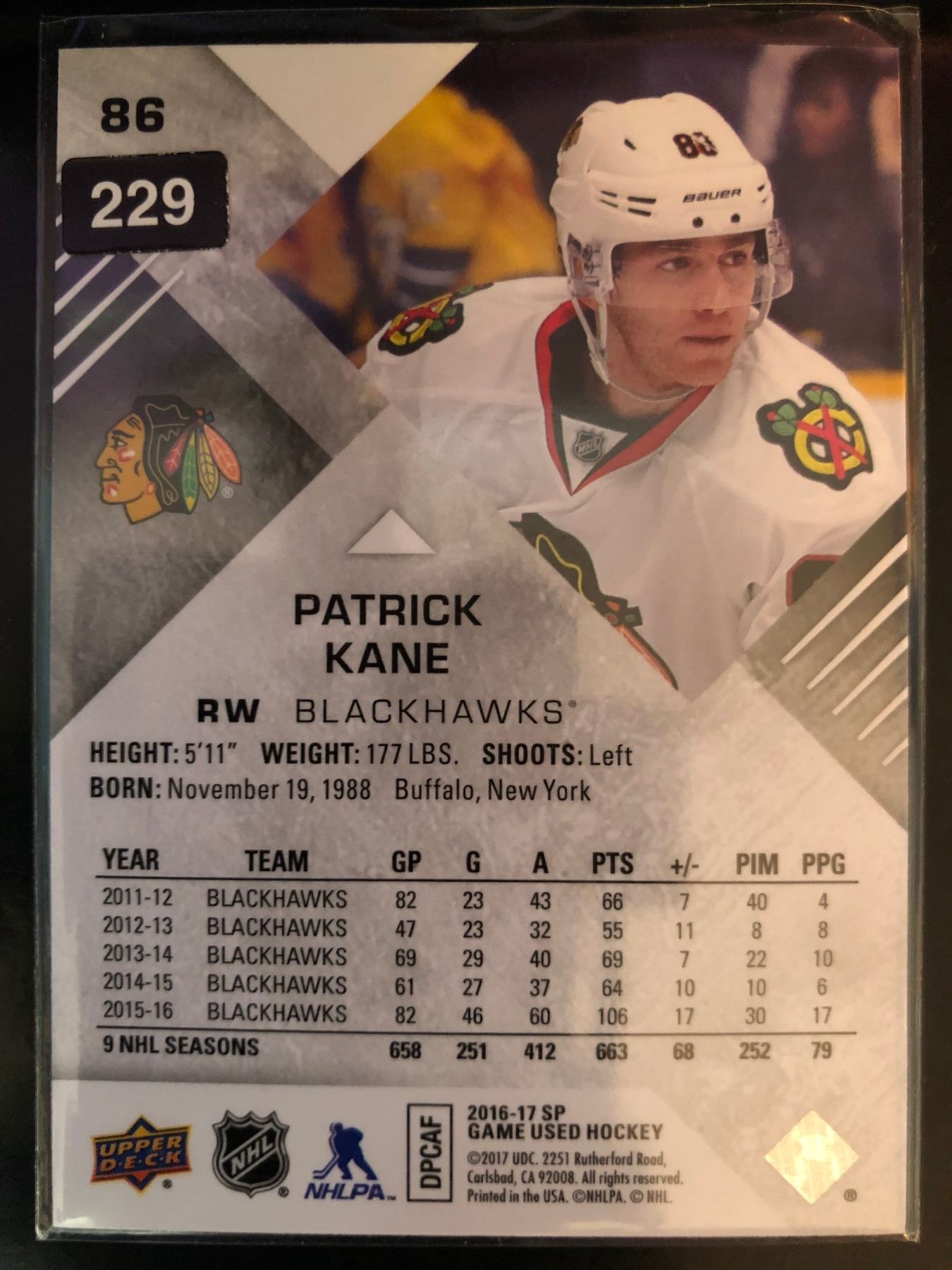 2016-17 SP Game Used Purple Patrick Kane Card #86