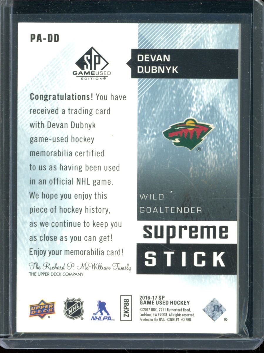2016-17 SP Game Used Supreme Sticks #PADD Devan Dubnyk 11/15 BV $60