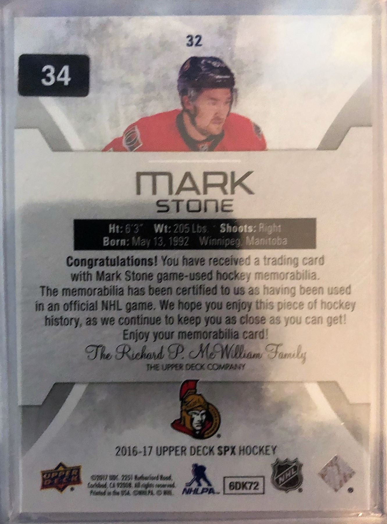 2016-17 SPX Red Materials Mark Stone #32 Jersey