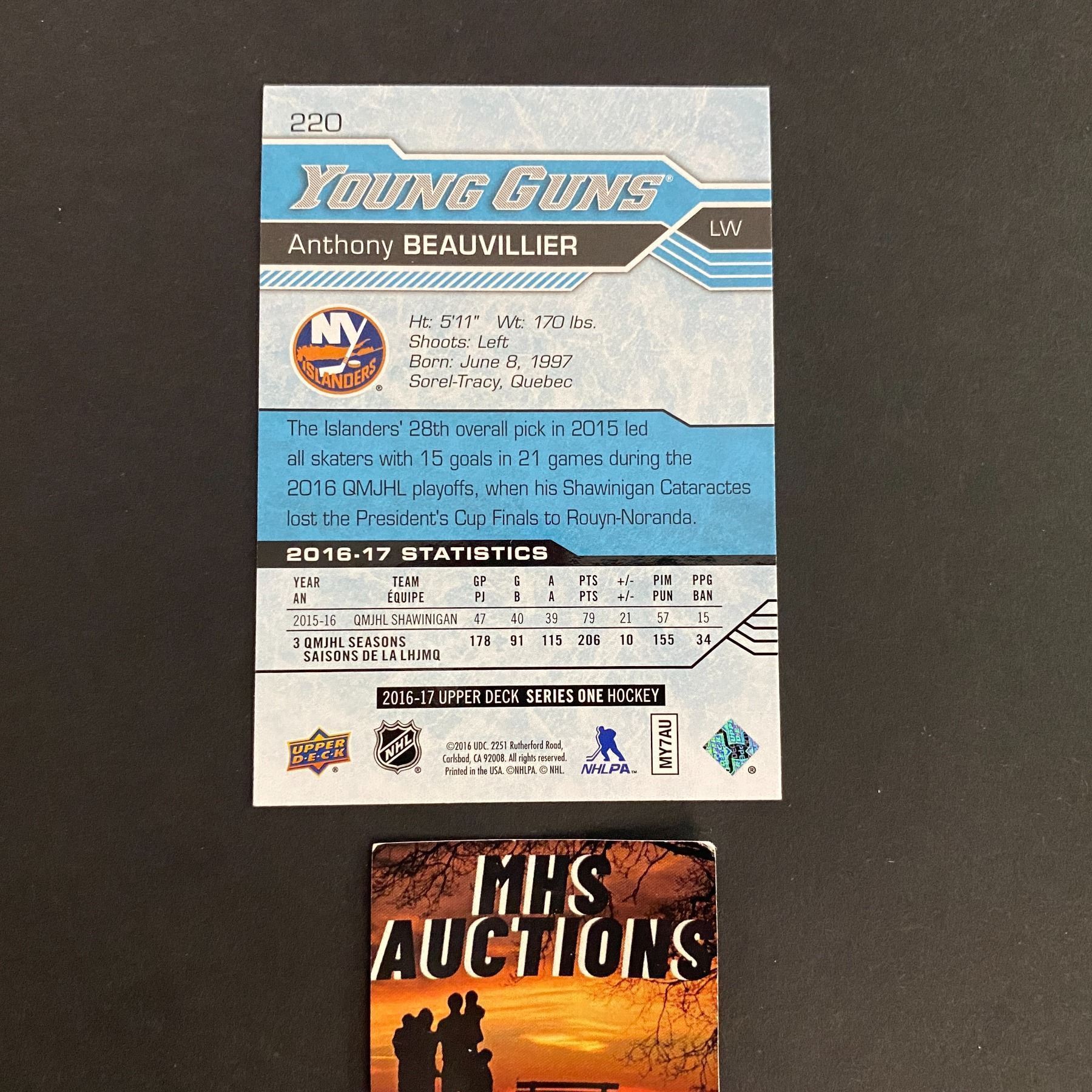 2016-17 UD SERIES 1 HOCKEY ROOKIE YOUNG GUNS ANTHONY BEAUVILLIER