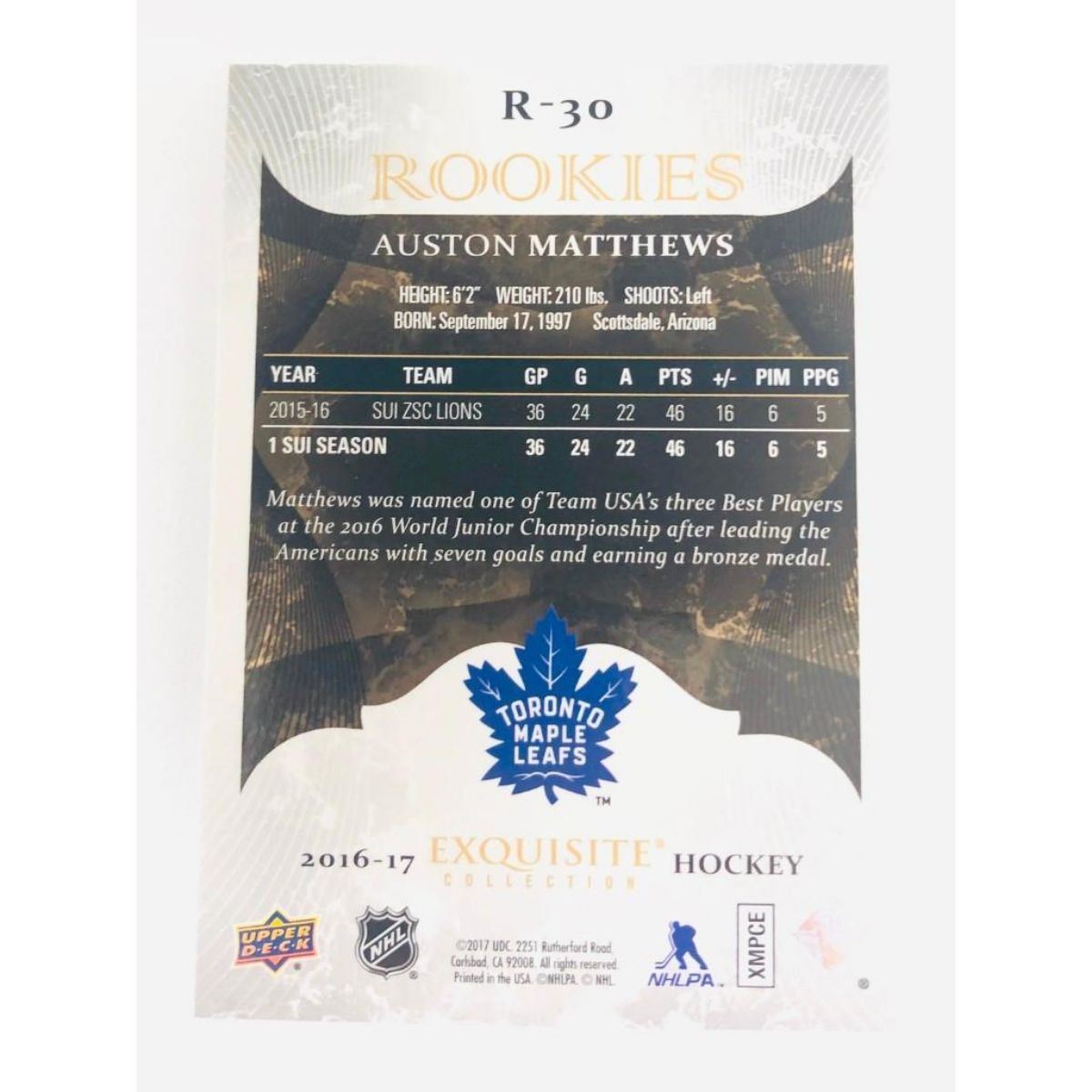 A 194/199 2016-17 Upper Deck Exquisite Collection Rookies R-30 Toronto Maple Leafs Auston Matthews Rookie Card. Please View Photos For Further Details.Â